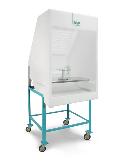 The Industry standard, Laguna Legacy Spray Booth is the choice for commercial facilities, schools and potters who have graduated to the next step in their business. Quality fabricated in America, this uni-cast, modular, polyethylene unit is without question the most industrial, economical, and environmentally sound choice for individuals and companies spraying glaze needs. Whether you need a single booth or a fully automated commercial spray line, the Laguna Legacy is the first and only choice for serious spray booth work.